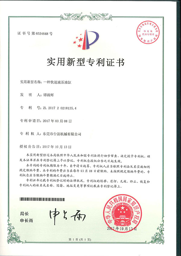上一條:一種帶空氣過濾功能的油箱組合專利證書 | 下一條:一種設有護罩的鎖模近接專利證書